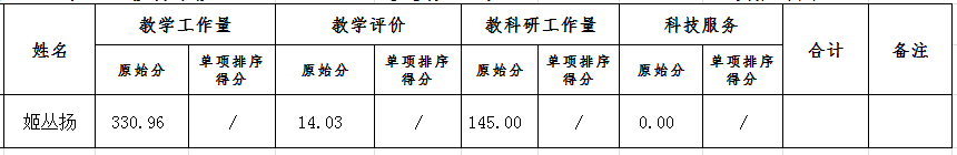 备注:因本次参加职称评审只有一人,故不计算单项排序。