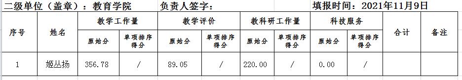 备注:因本次申报职称评审只有一人,故不计算单项排序。