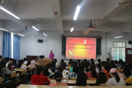 第三项由公司党总支书记屈咏梅给同学们讲党课讲团课。首先,屈咏梅向同学们强调了党校培训的重要性和目的,屈咏梅指出参加党校培训是贯彻中组部发展党员工作细则的需要,也是落实“十六字”建党方针和加强基层党组织建设的需要,更是提高入党积极分子和发展对象自身素质的需要,并且以翔实的事例告诫同学们端正入党动机,深入理解党员标准;最后屈咏梅向同学们提出了几点希望和要求,希望同学们践行先进,在班风、校风、学风和创建文明校园等各方面做到“有身影”“有声音”,要求参加党校培训的同学珍惜机会,自觉遵守纪律,积极完成党校培训任务。