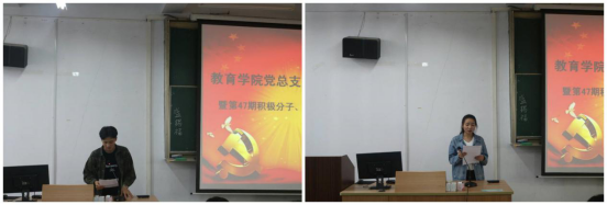 第一项由员工党支部书记董婷瑜宣读威廉希尔williamhill中文第47期入党积极分子、第18期发展对象名单;第二项分别由第47期入党积极分子代表蒙状、18期发展对象代表杨紫薇发言,他们表达了自己坚定的入党动机和对本次培训机会的珍惜。蒙状同学提出的三个“站出来”和杨紫薇用实际行动践行信念的表态得到了大家的一致赞同。