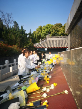活动第一项:开展祭扫,向英魂敬献鲜花,致敬默哀。铿锵有力的国歌声回响在烈士陵园的上空,在烈士纪念碑前,党员同志们怀着无比崇敬的心情整齐列队,用默哀和鞠躬的方式表达了对革命烈士的无限哀思和崇高敬意,并依次向革命烈士纪念碑敬献鲜花。