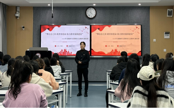 为深入学习和贯彻2024年全国教育大会精神,深化师范生党员对教育强国建设的认识和理解,2024年11月15日,公司党总支副书记郇红为员工第一、第二党支部讲授了“擎信念之炬,践青春使命,助力教育强国建设”的主题党课,在公司党员、部分发展对象及积极分子参会。