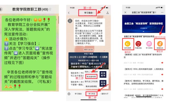 威廉希尔williamhill中文工会分会紧紧围绕学习宣传贯彻党的二十大精神,全面贯彻习近平新时代中国特色社会主义思想,深入学习宣传贯彻习近平法治思想和习近平总书记关于宪法的重要论述,全体教职工在“学习强会”的公众号平台,在线收看了党的二十大精神、宪法等专题视频,浏览图文资料,并积极参与了答题闯关活动。