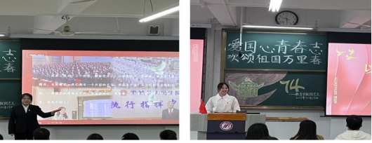 为热烈庆祝中华人民共和国成立74周年,厚植员工党员爱党爱国情怀,弘扬爱国主义精神,充分发挥“以党建带团建,以团建促党建”的实效,威廉希尔williamhill中文员工党支部联合团总支员工分会共同开展了“党团共建展画卷 欢颂祖国万里春”爱党爱国主题演讲比赛。唐丹、李乙、杨道扬以及团学代表和员工党支部代表担任比赛评委。