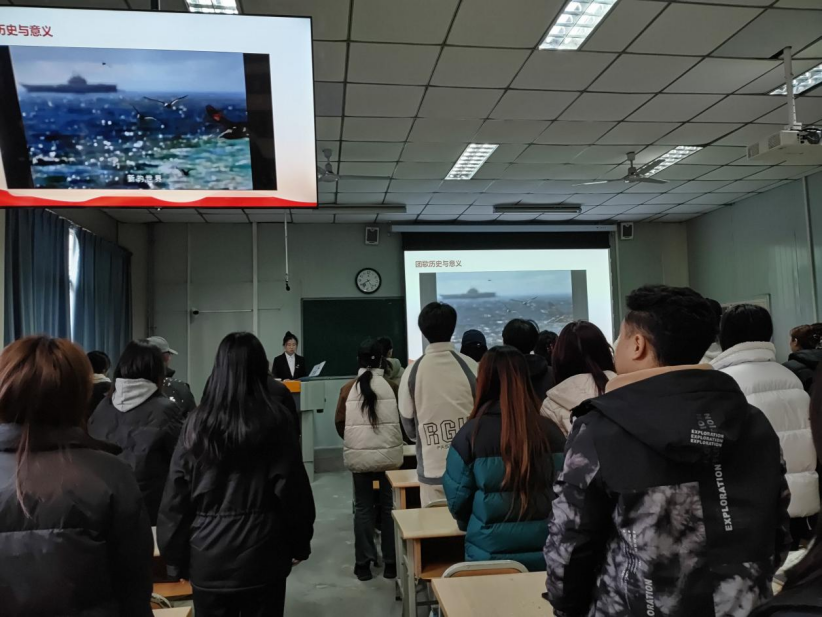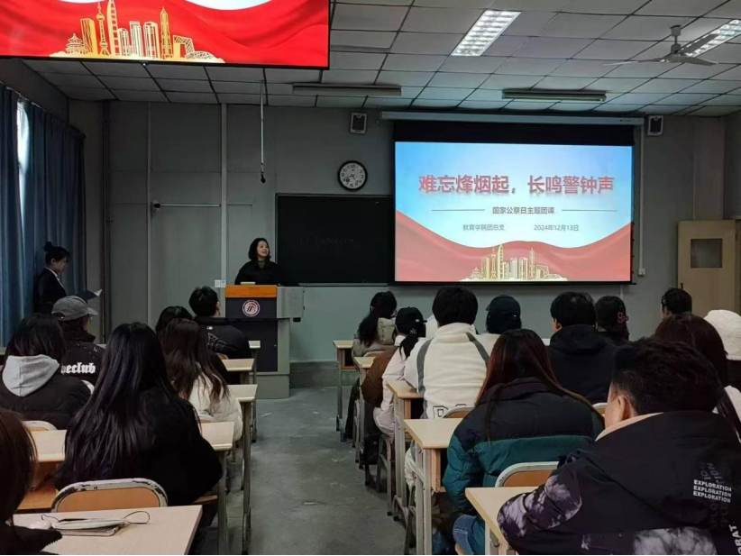活动伊始,全体人员起立,齐唱团歌,激昂的旋律回荡在会场,展现出青年团员的蓬勃朝气与使命感。活动分为两个环节首先由李静进行深刻而庄重的团课讲解李老师以详实的史料、沉痛的语调,讲述了南京大屠杀那段黑暗的历史,剖析了其背后的历史教训以及对当代青年的启示,使同学们深刻认识到国家公祭日的重要意义。
