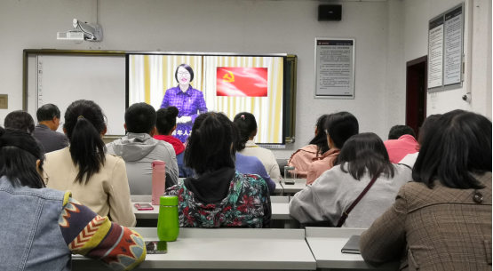 2020年10月7日下午,威廉希尔williamhill中文教工一支部组织全体党员集体观看由董婷瑜同志主讲党课《砥砺奋斗,让青春在党和人民最需要的地方绽放绚丽之花》。