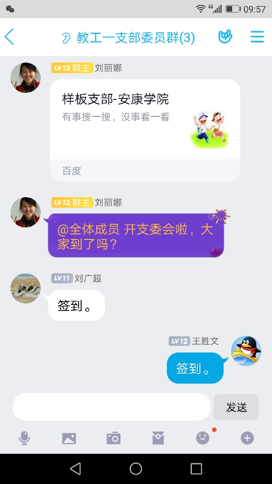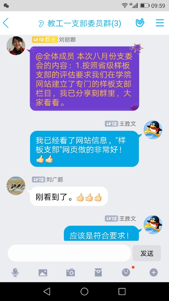 2020年8月17日(星期一)上午10点,威廉希尔williamhill中文教工一支部在QQ群召开了线上支委工作会议,会议由支部书记刘丽娜主持,刘广超,王胜文参加了本次会议。会议主要有两项工作:1.陕西省党建双创“样板支部”整改方案的落实情况,主要是新媒体的整改落实,。此项工作已经落实到位,在威廉希尔williamhill中文网站首页建设一级栏目,进一步完善了教工一支部在“样板支部”建设过程中的相关内容,各项规章制度,开展的党建+X主题党日活动等;2. 接公司党总支通知,按照“以案促改”工作方案要求,公司党总支安排于8月18日(本周周二)晚上7:30开展一次集中学习,参加人员:1.中心组全体成员;2.全体党员(教工一支部、教工二支部)。由刘广超同志在教工一支部群里进行提醒,由王胜文同志在安康智慧党建工作安排栏目下发正式通知,要求支部全体党员按时参加。本次集体学习通过钉钉群进行线上学习和交流活动。