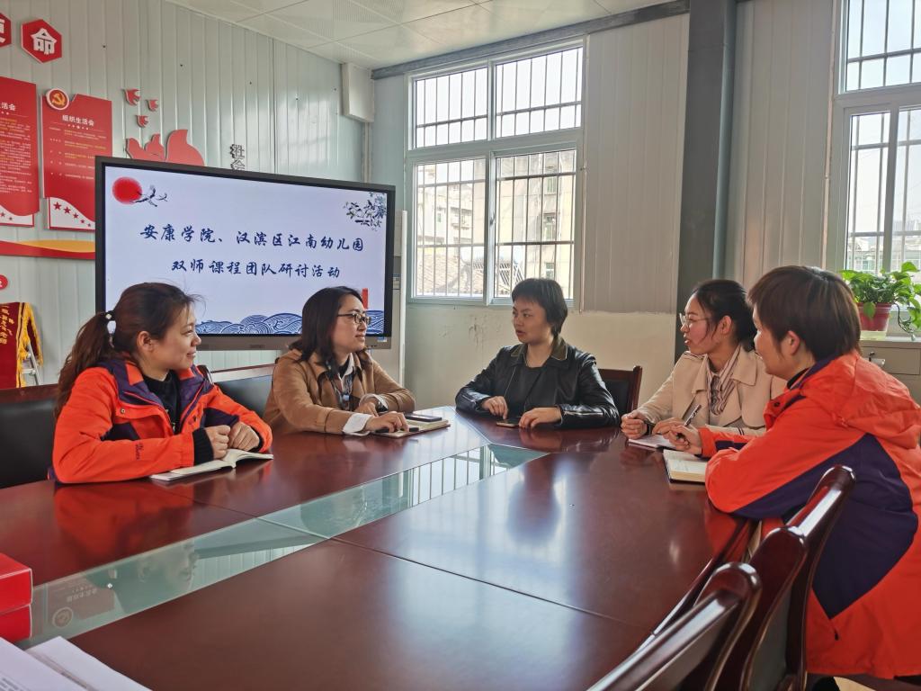 4月8日下午,威廉希尔williamhill中文副经理王丽娟和学前教育系教师成苗苗,前往安康市汉滨区江南幼儿园就学前教育专业的《幼儿园组织与管理》课程实施进行了探讨,双方主要交流的内容包括:课程内容的分配、教学的模式及校外教师进课堂的形式等。