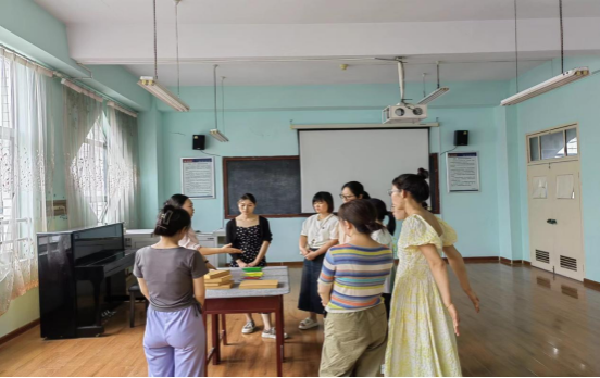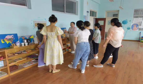 9月17日,主要以“托育早教园实用课程设计、早期教育玩教具使用方法实操说明与讲解”为主要切入点,各位老师跟随丛教授们走进学前教育实训室,对各类蒙氏教具的使用方法进行了详细的学习和了解。