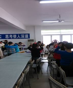 小组比赛,分成了4组,大家一起唱一起做,加强了练习。