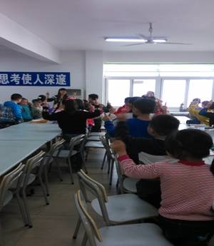 课堂中两名同学带领小朋友们学习手指操,小朋友们兴趣高涨,积极配合,气氛热烈。