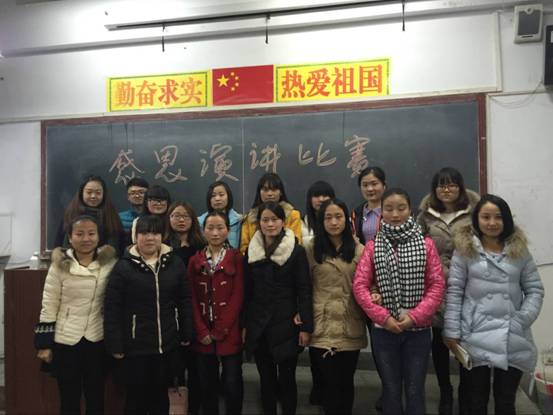 为了培养我系员工懂得感恩懂得回馈的情操,在院团委的号召下,由我系团总支主办,教育学社承办的感恩演讲比赛决赛于12月4日在一号教学楼六楼报告厅举行。莅临此次比赛的评委有:教育科学系党总支书记王辉书记,我系教师陈珂老师,教育科学系团总支书记董婷瑜老师。