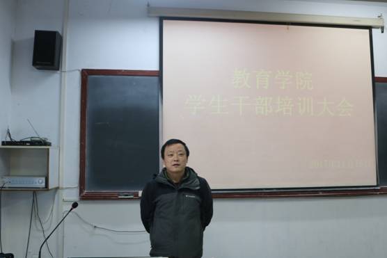赵斌老师从“做员工干部的意义”、“员工干部应具备的素质”、“如何做好员工干部”三个方面讲了如何成为一名合格的员工干部。首先,要做到角色定位,作为员工会的一员,就应该学会承担责任,执行力度要到位,办事要高效,不要拖拉工作。员工干部应树立正确的价值观,有坚定的政治立场,是非分明,起到示范带头作用,“在其位,谋其政”,避免推卸责任。其次,讲到员工干部的核心要求是组织能力,要善于团结同学,主动组织各项活动,辅助老师完成员工会分内的工作。最后,员工干部的首要任务是学习,在做好本职工作的同时更要提高学习成绩。