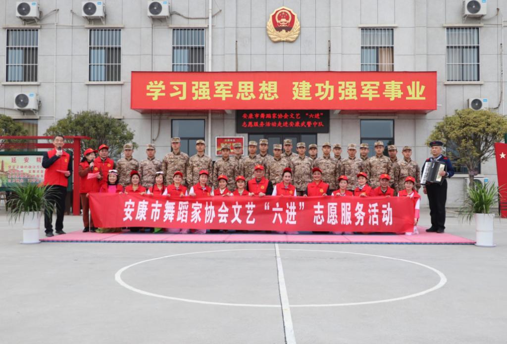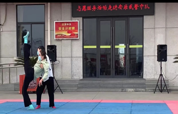 为全面贯彻党的二十大精神,深刻学习领会习近平新时代中国特色社会主义思想,提升公司师生服务地方文化建设,携手地方单位共创文明城市。2023年2月28日威廉希尔williamhill中文教师胡海波带队2022级专升本员工海蓉、邢佳钰两位同学参加由安康市舞蹈家协会组织文艺“六进”志愿服务公益演出——走进安康武警中队。