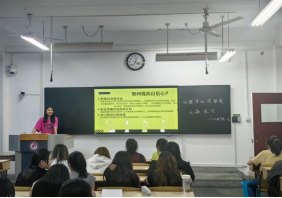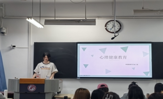 会上,班级心理委员通过PPT讲解、短视频等形式向班级成员宣讲老员工心理健康的重要性和调节心理问题的有效方法,带领同学们认知心理问题表现的各种症状、心理问题的发展过程、心理问题的解决措施,以及在日常的学习和生活中如何学会调节自我,保持良好的心理健康状态。同时,心理委员组织了互动小游戏,以便使班级成员了解自己的性格,学会正视自己的问题,理性看待心理反应,引导同学们学会排解烦恼,及时调整心态,以积极的心态面对生活和学习。班级成员积极参与言,主动分享自己的问题与烦恼,就心理健康建设展开热烈讨论。