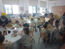 并且员工们观摩了幼儿园制作披萨美食活动,老师们为幼儿精心准备活动食材,处理的非常干净卫生。更让员工们大吃一惊的是,员工们所见习的班级是小班,小班幼儿的动手能力超出了员工们的想象,她们可以自如的用塑料刀切各种食材、剥豆子等等。观摩小五班区域活动时两个小男孩搭建的积木小城堡,让见习员工觉得她们小小的脑袋真的有大大的潜能!并且许多员工尝试组织了教育活动。如“传沙包”,组织过程中小朋友们积极的参与,团队合作,在合作中取得胜利。锻炼了员工的公司产品能力。