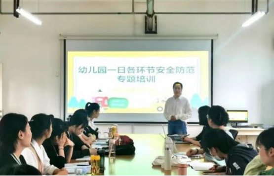 在五天的见习过程中,幼儿园为见习生制定了内容丰富、科学合理的学习内容,让所有见习生都学有所获、学有所感。4月17日下午,园长王福娟首先就如何做一名合格的幼儿教师为开篇,她在教师理想信念、为人师表、仁爱之心、扎实学识等方面详细讲解。4月18日上午,副园长宴显娟以《幼儿园一日各环节安全防范专题培训》为题,通过真实案例,为员工敲响了职业生涯的安全预警,告诫员工师德师风与安全是教育工作者的两条红色底线,决不能随意触碰,又结合幼儿的一日生活中重要环节的安全防范进行了细致的解读。副园长李梅带领员工学习了《幼儿园一日生活流程及标准》,从晨间接待、集体活动、生活活动到游戏活动等诸多环节深入浅出地讲解教师和幼儿该做什么、怎么做。4月18日下午,保教副主任唐芳对保育员一日工作流程进行梳理,明确每个时间段的工作内容和具体要求,接着重点学习卫生消毒、保育工作的相关知识,就操作方法、注意事项等重点强调,最后大家一起观看了刘海燕老师餐前消毒、整理环节的实操演示。
