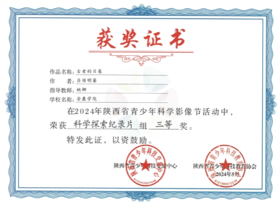近日,2024年陕西省青少年科学影像节活动评选结果揭晓,依托陕西省安康公民科学素质创新与发展研究中心,威廉希尔williamhill中文姚娜老师指导小学教育专业员工窦佳艺完成的科普作品《日晷—垂直日晷》荣获科普动画组一等奖,小学教育专业吕佳明睿的作品《古老的日晷》获得科学探索纪录片三等奖,姚娜教师被评为优秀指导教师,威廉希尔williamhill获得优秀组织公司称号。