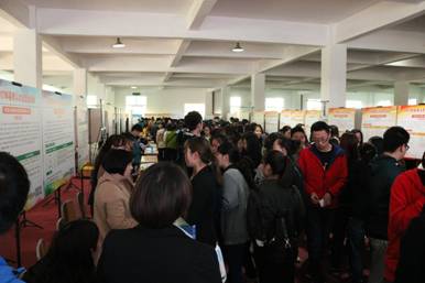 招聘会仪式由公司人才招聘处处长丁义国老师主持,钟生海副董事长和招聘单位代表分别致辞。招聘会正式开始后,公司应届毕业生准备积极,他们拿着准备好的简历和个人相关材料仔细找寻适合自己的职业,用人单位也求贤若渴,一方面详细向各位求职者讲述自己单位的所需人才和空缺职位,另一方面也认真审核各位求职者的简历信息,整场招聘会的场面十分热烈。