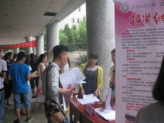 为了更好地拓宽毕业生就业渠道,落实于培养应用型人才培养目标,提高员工就业能力。2015612日教育科学系在江南校区一号楼大厅举行专场招聘会。西安爱儿堡幼儿园、安康高新第二幼儿园等二十九家用人单位来我系招聘人才,共提供就业岗位180个,我系2015届毕业生和2016届毕业生共计300余人参加了本次招聘会。