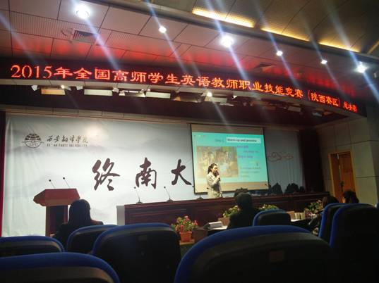 2015年全国高师员工英语教师职业技能决赛(陕西赛区)于1211日在西安翻译公司落下帷幕。这次比赛有来自西安文理公司、西安翻译公司、渭南师范公司、咸阳师范公司、榆林公司、商洛公司、威廉希尔williamhill等7个陕西各地高校的参赛选手参加。比赛分为一级和二级两个等级,分别对应小学英语和初中英语。决赛内容主要包括:英语备课、英语说课、评委提问三个环节,主要考察选手的英语教学设计、语音语调、台风、以及临场反应能力。